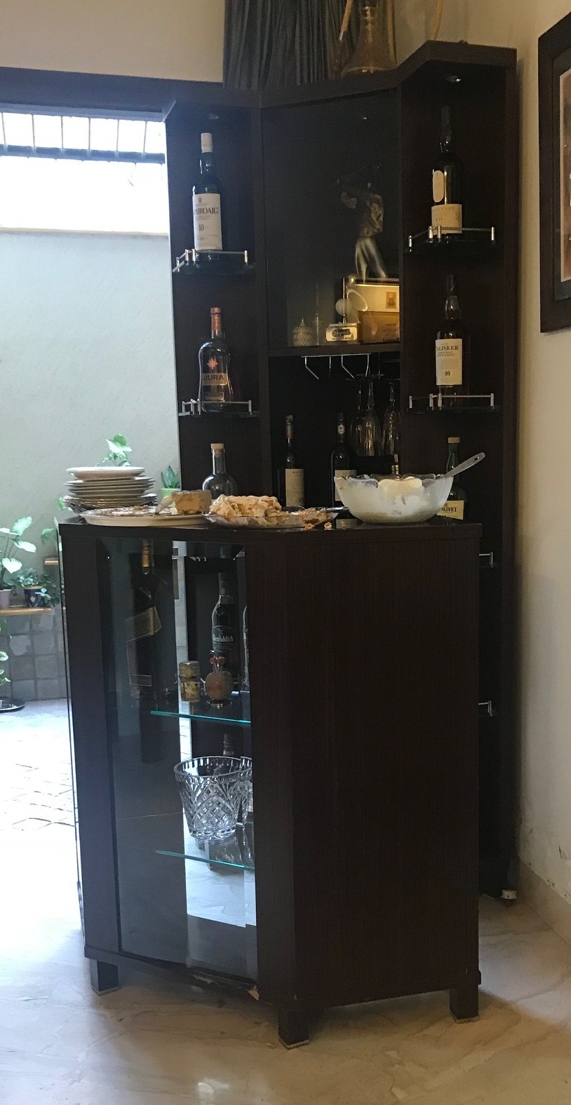 A bar cabinet is a storage unit designed to organize and display beverages, glassware, and bar accessories. It typically features shelves, drawers, and compartments for storing liquor bottles, wine, cocktail tools, and glasses. Some bar cabinets also include built-in wine racks or spaces for mixing drinks. Available in various sizes, styles, and materials, bar cabinets are used to create a dedicated space for entertaining guests and can serve as a stylish focal point in living or dining areas.